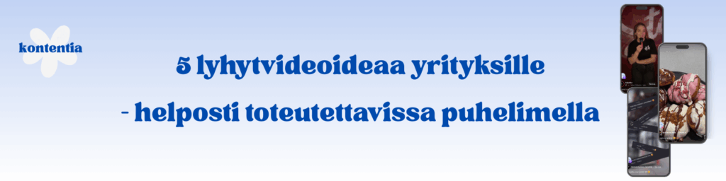 Lyhytvideot ovat yrityksille tehokas tapa lisätä näkyvyyttä ja herättää kiinnostusta sosiaalisessa mediassa. Ne sopivat erityisen hyvin nykypäivän nopeatempoiseen viestintään, sillä lyhyt ja napakka sisältö houkuttelee katsojan huomion nopeasti. Tässä viisi helposti puhelimella toteutettavaa lyhytvideoideaa. Kulissien takana Kuvatkaa video yhden tai useamman työntekijän työpäivästä. (Tästä saa helposti tehtyä myös jatkuvan videosarjan) Kulissien taakse kurkistaminen […]